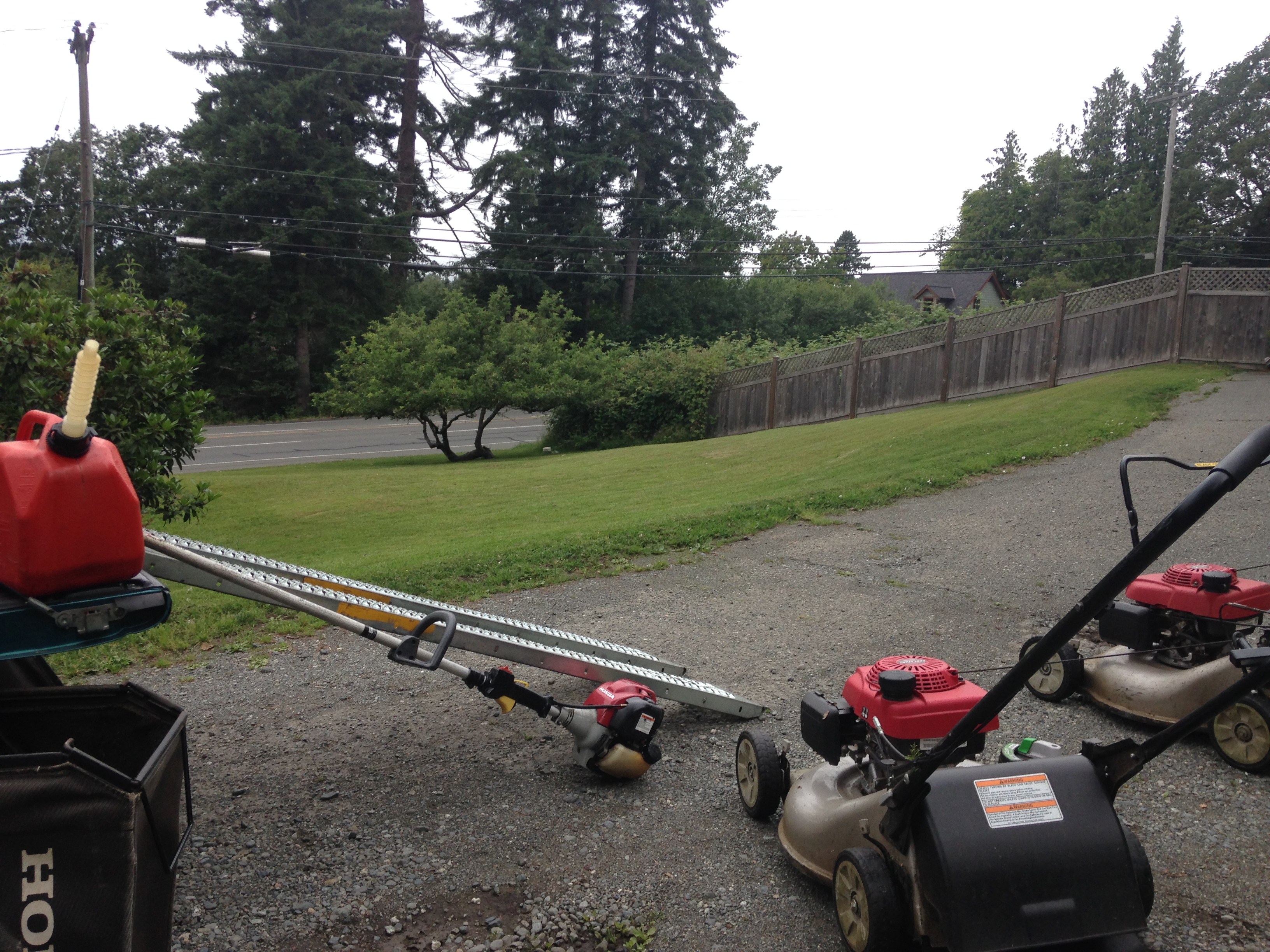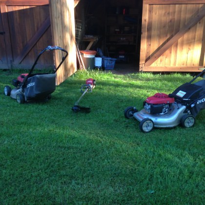 James and I had a big day. I thought it was time for a pic. The Hondas are gold. Do not get these mowers. Please dont.